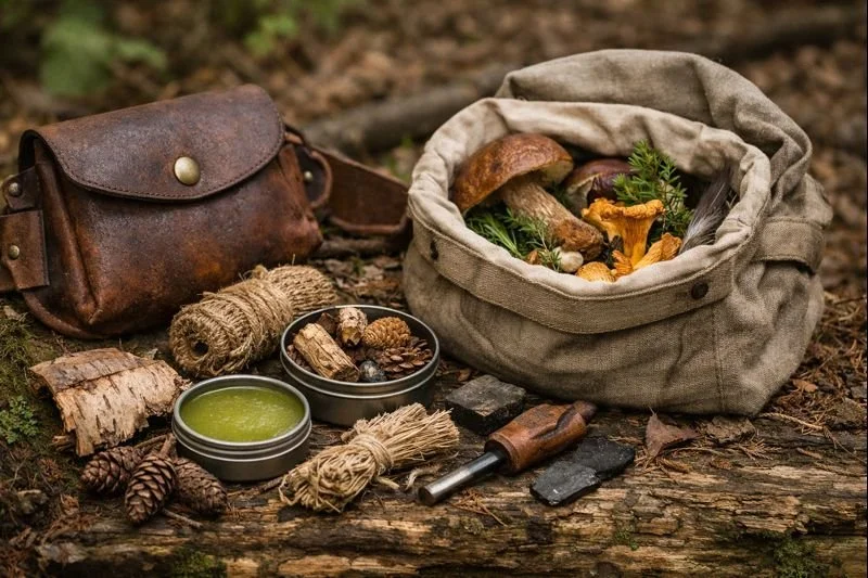 This collection brings together practical tools such as handmade foraging pouches, mushroom bags, simple fire-starting aids and everyday salves, each designed to earn its place through usefulness rather than novelty. Made in small batches using eco-friendly, sustainable materials, these are items shaped by experience and intended for real use in the field.